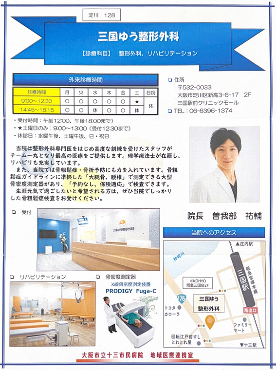 大阪市立十三市民病院の「地域医療連携室」より当院(三国ゆう整形外科)の紹介記事が掲載されました!地域で切れ目のない医療を実現するため、病診連携をいっそう強化してまいります。