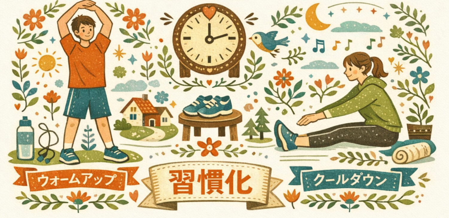 まず基本となるのは、日々の練習前後のウォームアップとクールダウンを単なる作業ではなく、完全に“習慣化”してしまうことです。また、土台となる股関節周囲や体幹、さらには片脚での安定性をしっかり整えることで、特定の部位への負担を分散させることができます。