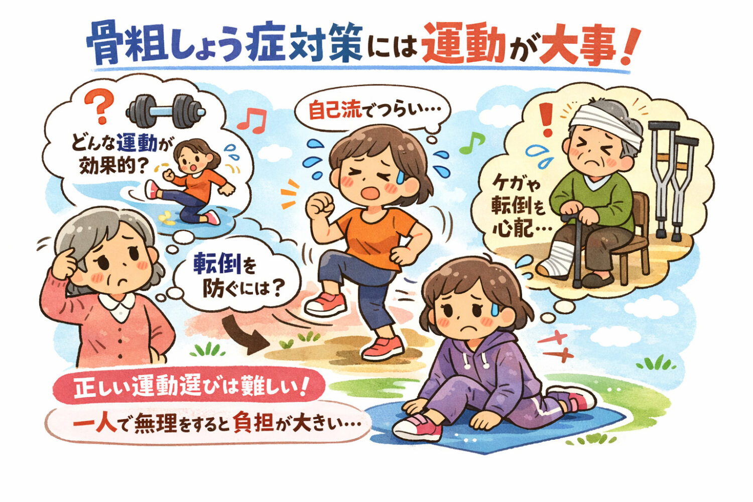 骨粗鬆症対策で中心になるのは、やはり運動です。ただし、「どんな運動が骨密度に効果的なのか」「転倒を減らすには何を優先すべきか」を正しく選ぶのは簡単ではありません。さらに、自己流の運動を一人で続けることは負担が大きく、途中でやめてしまう方も少なくありません。そこで本記事では、整形外科医の視点から、骨粗鬆症に対するリハビリテーション(運動療法)の有効性と、安全に継続するための考え方をわかりやすく解説します。