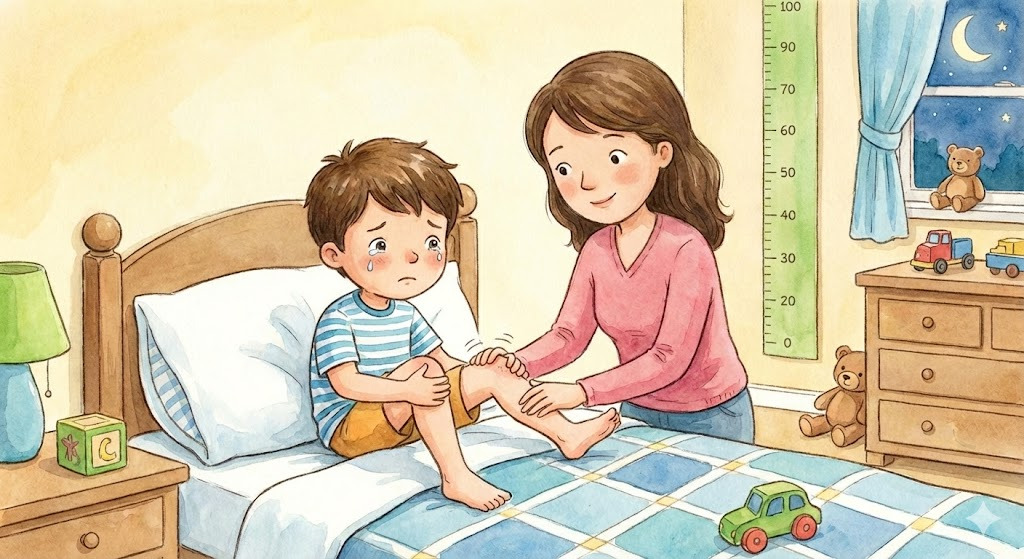 痛みは主に脚の筋肉に生じ、膝の下の前面、太もも、ふくらはぎなどに感じられることが多くみられます。特に夜間に出現しやすく、日中に活発に遊んだ後や就寝時に痛みが増す傾向があります。痛みは「ズキズキする」「引っ張られるような感じ」などと表現されることが多く、不快感程度のものから強い痛みまでさまざまです。
