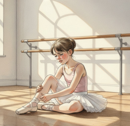 8〜11歳くらいでレッスン回数が増える時期、大人バレエで発表会前に急に回数が増えた時期は、関節や腱がまだ慣れていないため痛みが出やすくなります。